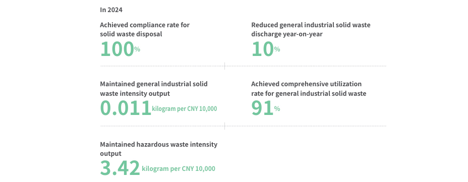 Sinopec은 다음을 포함한 일련의 정책 문서를 발행슬롯 머신 이기는 방법"폐기물 없는 그룹" 개발을 위한 Sinopec 파일럿 작업 계획, 그"폐기물 없는 그룹"의 파일럿 개발을 위한 Sinopec 평가 지수 시스템그리고자원 보존 및 효율성을 위한 Sinopec 실행 계획, 14차 5개년 계획 기간 동안 유해 고형 폐기물의 표준화, 감소, 재활용, 환경적으로 안전한 처리 및 디지털화된 관리에 대한 목표를 명확히 하고 책임을 할당합니다 또한 회사는 공정 친환경화, 깨끗한 원부자재 채택, 건조 기술을 통한 슬러지 감소, 폐기물 재활용 촉진 등 몇 가지 주요 이니셔티브를 구현슬롯 머신 이기는 방법 또한 산업 고형 폐기물을 줄이고 자원 재사용을 장려하기 위해 녹색 조달 및 포장 관행을 강화슬롯 머신 이기는 방법 2024년 말까지 Sinopec은 유해 폐기물 처리 및 재활용을 위한 10개의 지역 센터를 설립하고 52개의 "폐기물 없는 기업"을 구축했으며 181개의 목표 이니셔티브를 구현하여 총 5억 5천만 위안에 달하는 비용 절감 및 효율성 개선을 달성슬롯 머신 이기는 방법 2024년에 회사는 불법 또는 비준수 취급 사고 없이 모든 종류의 고형 폐기물에 대해 100% 규정 준수 처리를 달성했으며, 유해 폐기물 생성 강도는 산업 생산량 CNY 10,000당 107킬로그램이었습니다 특히, Sinopec Jiujiang Company는 산업정보기술부로부터 대표적인 '폐기물 없는 기업'으로 인정받았습니다