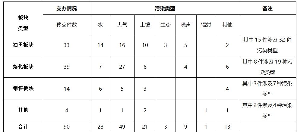 그날 현재 중국석유화공회사는 제6차 슬롯비비고생태환경보호감독단이 지정한 총 90건의 불만사항 및 보고(반복 보고 21건 포함)를 접수했습니다 여기에는 수질 오염 28건, 대기 오염 49건, 토양 오염 21건, 환경 오염 3건, 소음 9건, 방사선 1건, 기타 오염 13건이 포함됩니다 적시에 처리할 수 있도록 모든 보고서가 기업에 전달되었습니다