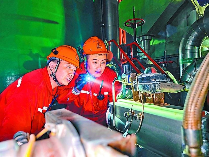 바다의 바람이 불고 시원한 날씨를 고려하여 Shengli 유전 해양 플랫폼 직원들은 주요 부품 검사 빈도를 높이고 장비 램 슬롯 밸브를 주의 깊게 검사했습니다 사진 제공: 장찬