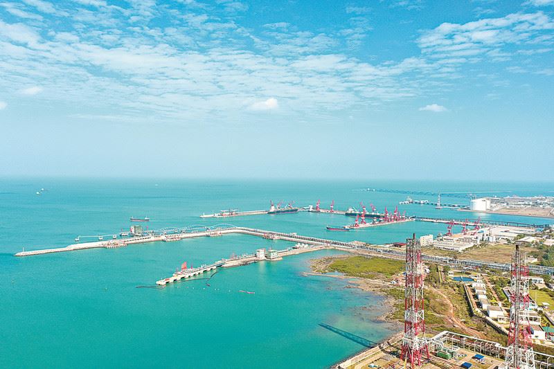 사진은 4월 11일 푸른 하늘 아래 하이난 정유 및 화학 석유 터미널을 보여줍니다 사진: Wu Shushan, Li Qiang, Wang Menglu, text