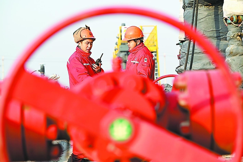 사진 2: 1월 1일, Shengli Jiyang 셰일 오일 국가 시범구 Niuye 1번의 테스트 유정 그룹에서 Shengli 유전의 Xianhe 석유 생산 공장 직원들이 셰일 유정의 안전하고 원활한 운영을 보장하기 위해 유정, 파이프 네트워크 및 기타 장비와 시설을 주의 깊게 검사했습니다 사진: Wang Guozhang, 글: Li Jing