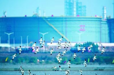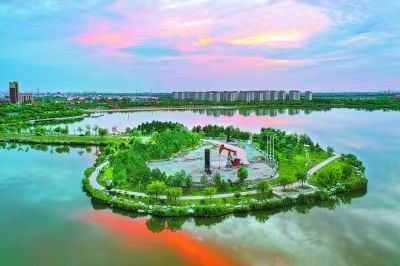 백로가 강철 정글 근처의 물과 하늘 사이를 날아 조화롭고 아름다운 그림을 만듭니다 하트 모양의 우물터는 아름다운 섬에 위치하여 주변의 무성한 녹색 환경과 조화를 이루고 있습니다 우리 탐사팀은 별빛 아래서 전진하며 야생 생물들을 위한 평화로운 공간을 남겨줍니다 석유 및 가스 굴착 장치는 풍력 발전 시설과 함께 푸른 산 속에 우뚝 솟아 소비자에게 에너지를 돌려줍니다🕊